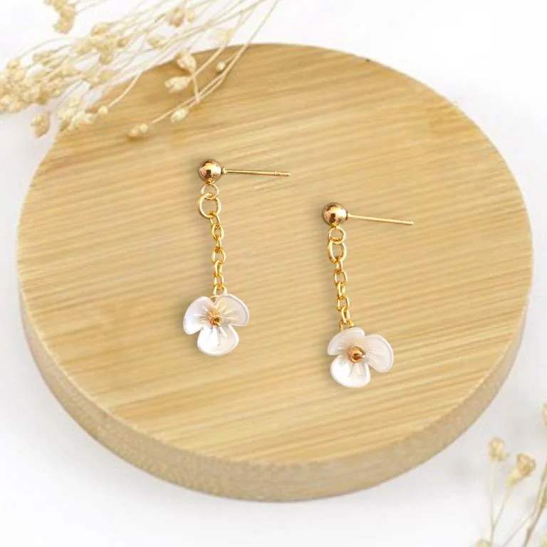 Les matériaux, les couleurs des papiers et les décorations peuvent modifier le tarif de ces boucles d’oreilles pour mariée.