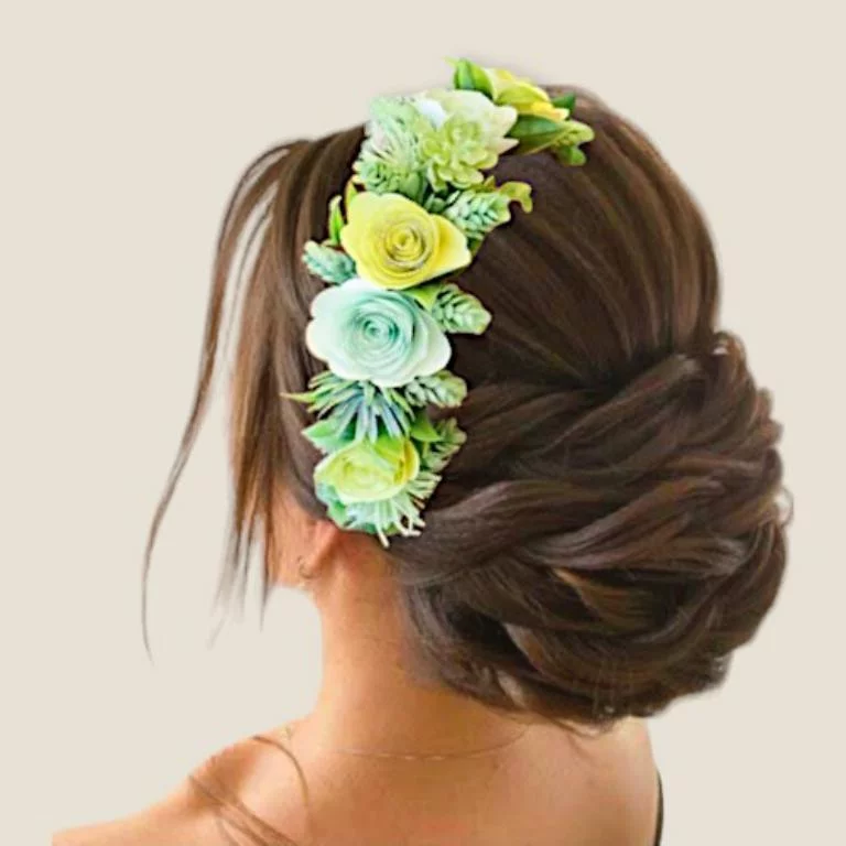 La couronne de fleurs origami de mariage est pensée pour sublimer votre coiffure de façon élégante et romantique.